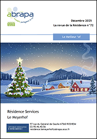 Les samedi 6 et dimanche 7, la résidence du Meyerhof tiendra un chalet pour la vente des différentes créations réalisées en activités. Nous vous attendons nombreux !