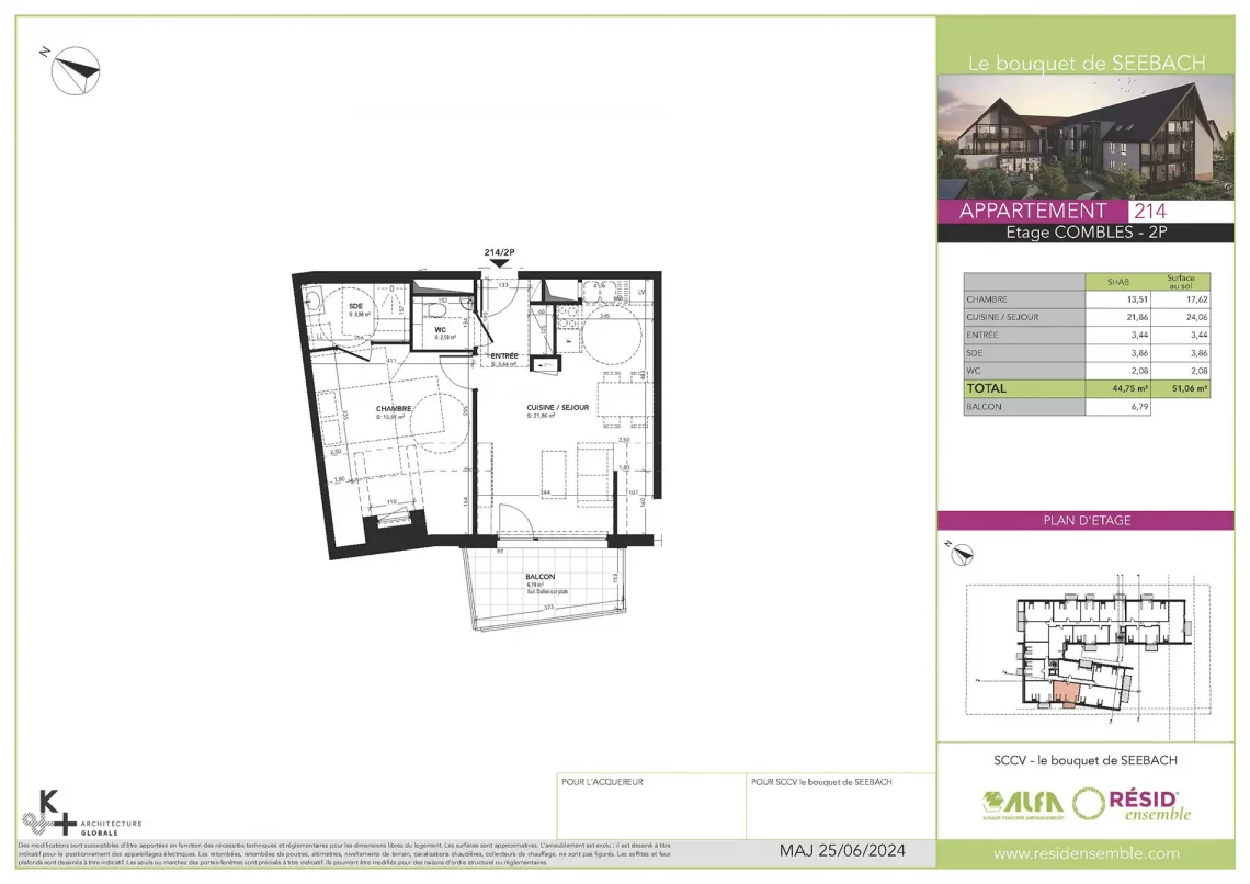 Le lot 214 est un lumineux 2 pièces qui se situe au 2ème étage avec ascenseur. Il se compose d'un hall d’entrée avec placard, d'une cuisine aménagée, d’une agréable pièce de vie donnant accès à un balcon, idéal pour profiter des beaux jours, d'une chambre à coucher donnant accès à une salle d’eau privative et d'un WC séparé. Au pied de l'immeuble, une place de parking privative complète ce bel ensemble.